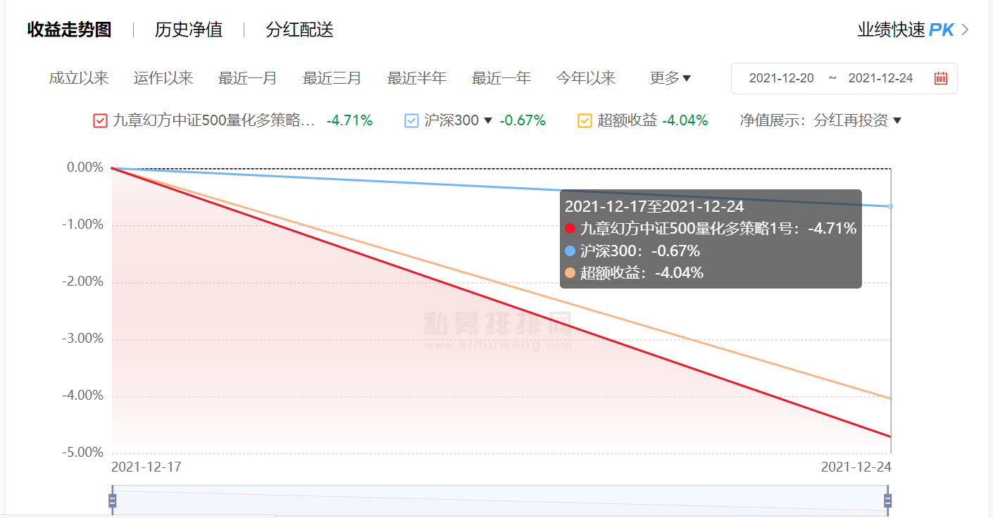 九章幻方中证500量化多策略1号上周净值下跌4.71%