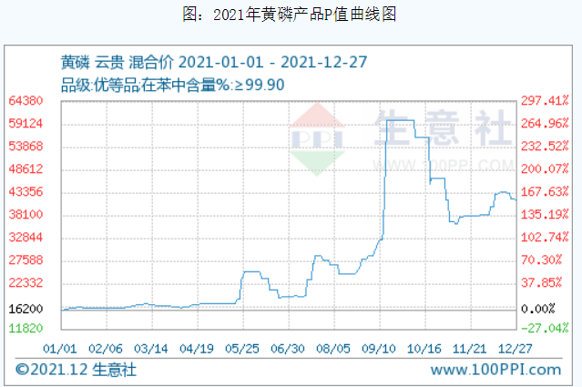 财联社(南京,记者 贾晓宁)讯,2021年,磷化工产业链整体表现强势,特别是上游原料黄磷受能耗双限影响,从今年5月开始价格暴涨,年内总涨幅高达168%;而中游磷酸、三氯化磷以及下游磷肥、草甘膦和新兴的磷酸铁产品,都在黄磷带动下呈现大涨态势。