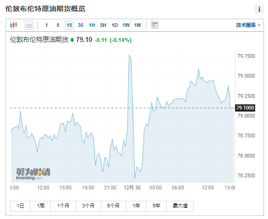 (布伦特原油期货15分钟走势图 来源:英为财情)