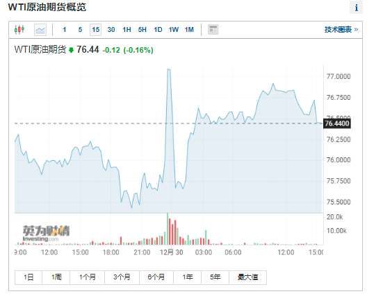 (WTI原油期货15分钟走势图 来源:英为财情)