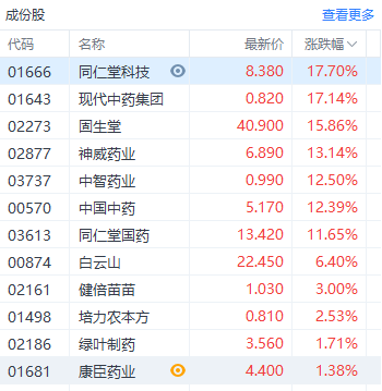 在概念股和板块方面,科技股如阿里概念以及中医药股成为当日龙头股,板块涨幅分别为20.08%和10.06%;化妆品概念股和香港本地消费板块小幅度下挫,分别下跌1.25%和0.89%。