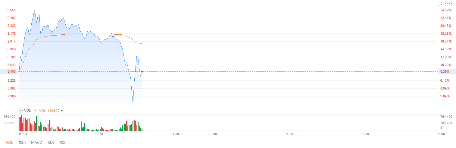 财联社(上海,编辑 周新旸)讯,商汤(00020.HK)上市后表现惊人,三天股价已翻倍,周二(1月4日)其股价继续大涨,一度涨幅达24.5%,不过早盘尾段股价突然跳水,目前涨幅已缩减至8.47%;同时该股今日成交额排港交所第二,高达20亿港元。