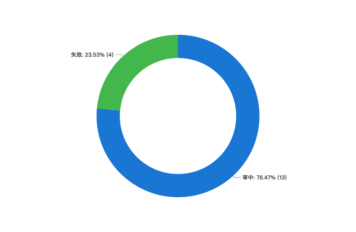 在专利活跃程度方面,根据智慧芽数据,智齿科技处于审查中状态的专利共13件,占比76.47%,在审查中的专利占比较大,反应了智齿科技近期创新活跃程度较高。