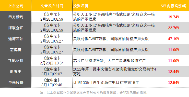 《盘中宝》在2月28日09:27跟踪到发布文章《美欧对俄SWIFT制裁,该重要资源品价格应声大涨》,文中梳理提及美欧对俄SWIFT制裁,国际原油价格应声大涨。
