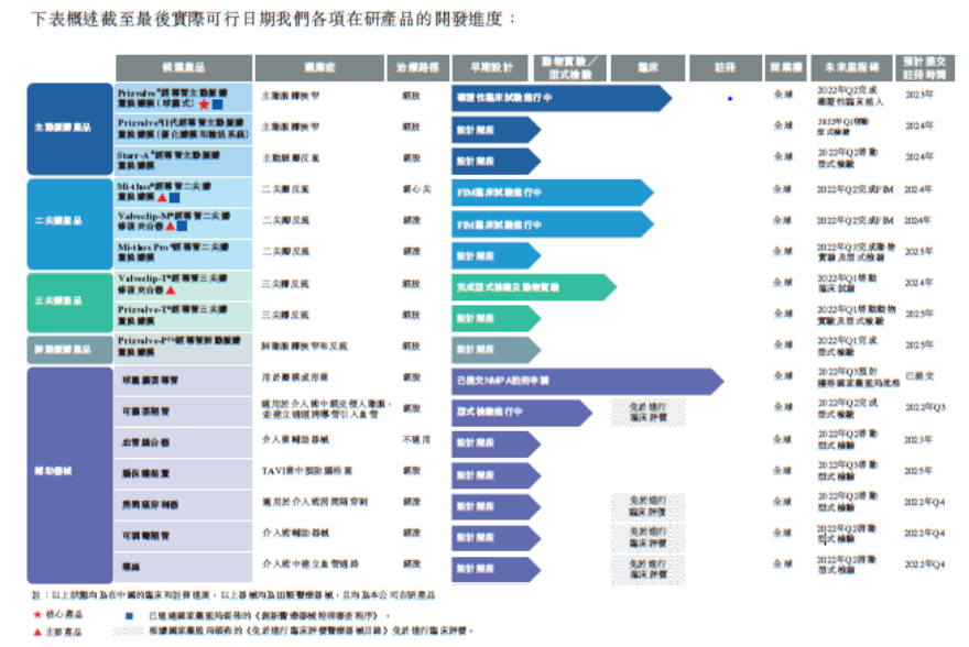 根据该公司官网的介绍,纽脉医疗现共有16款在研产品,囊括了主动脉瓣、二尖瓣、三尖瓣和肺动脉瓣四个人类心脏的瓣膜,是中国少数拥有全面产品组合的心脏瓣膜器械提供商之一。近两年,公司Mi-thos、Prizvalve、Valveclip-M三款在研产品均已进入临床试验并获准进入特别审查程序,成为截至目前唯一一家在瓣膜置换与修复领域拥有3个获准进入创新医疗器械特别审查程序“绿色通道”在研产品的企业。