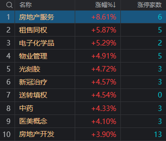 财联社3月17日电,大盘上午高开震荡走高,午后震荡回落,最终三大指数均涨超1%,创业板指领涨。盘面上,房地产板块开盘走强,阳光城等多股涨停。光刻胶概念股全天强势,创业板股容大感光涨停。新冠治疗概念股午后冲高回落,创业板股红日药业涨停。尾盘电子身份证、油气开采等板块异动拉升。总体上个股涨多跌少,两市超3600只个股上涨,超百股涨停,但炸板个股也接近百股,炸板率接近50%。沪深两市今日成交额12754亿,较上个交易日放量834亿。板块方面,房地产服务、光刻胶、新冠治疗、中药等板块涨幅居前,证券、港口、硅能源等少数板块下跌。截止收盘,沪指涨1.4%,深成指涨2.41%,创业板指涨2.87%。北向资金全天净买入53.65亿,其中沪股通净买入4.92亿,深股通净买入48.74亿。