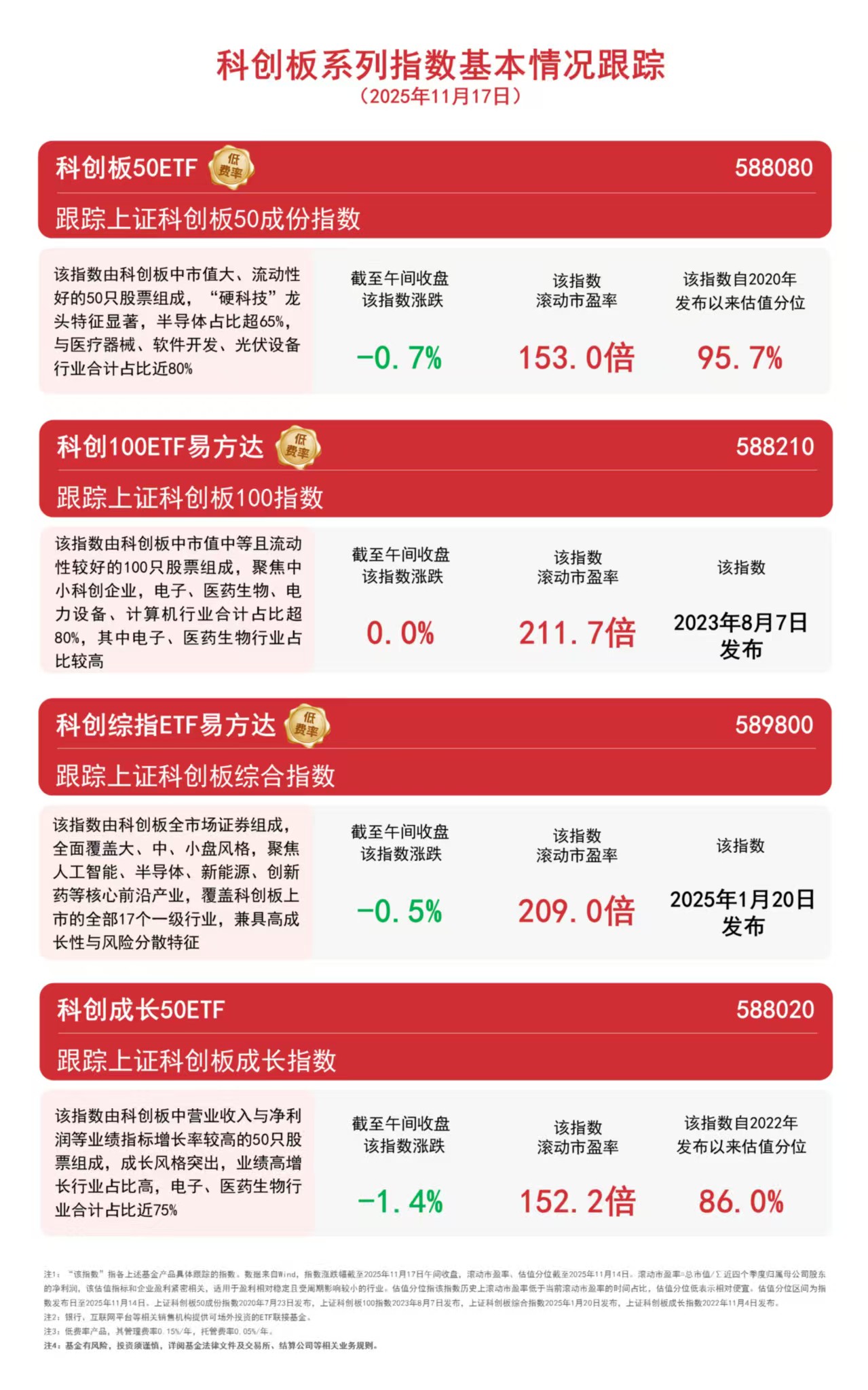 本周,科创综指下跌2.3%,科创100指数下跌2.4%,科创板50指数下跌3.8%,科创成长指数下跌3.9%。