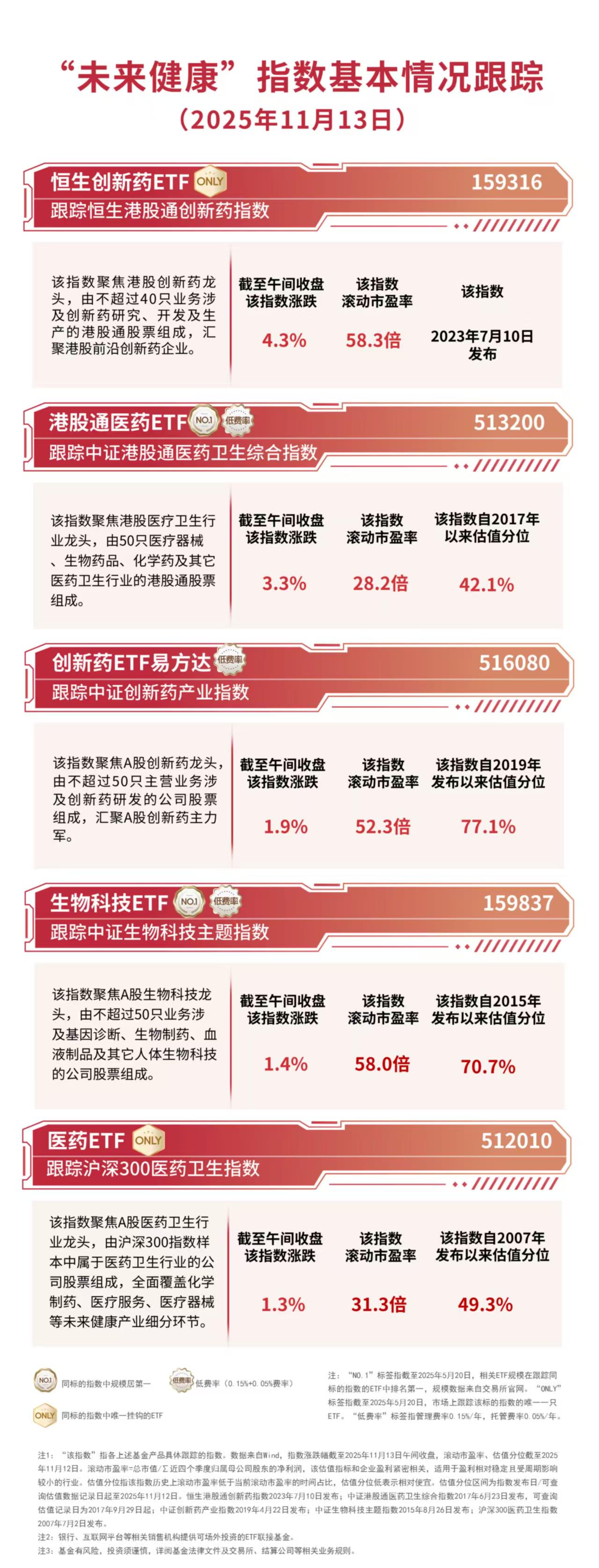 恒生港股通创新药指数汇聚港股创新药领域的领军企业,是ETF跟踪的指数里首批“纯度”达100%的创新药指数;中证创新药产业指数聚焦A股创新药赛道,由不超过50家主营业务涵盖创新药研发的龙头公司股票构成。恒生创新药ETF(159316)和创新药ETF易方达(516080)分别跟踪上述指数,可助力投资者便捷把握创新药产业发展机遇。