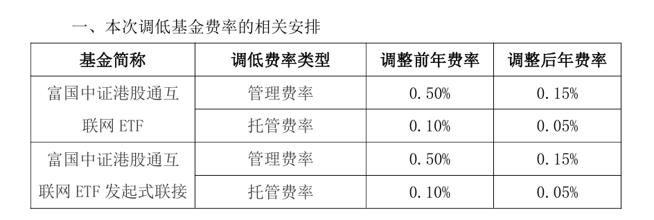 财联社3月25日电,富国基金决定自2026年3月27日起调低港股通互联网ETF富国(159792)、富国中证港股通互联网ETF发起式联接(014673)的管理费率和托管费率。