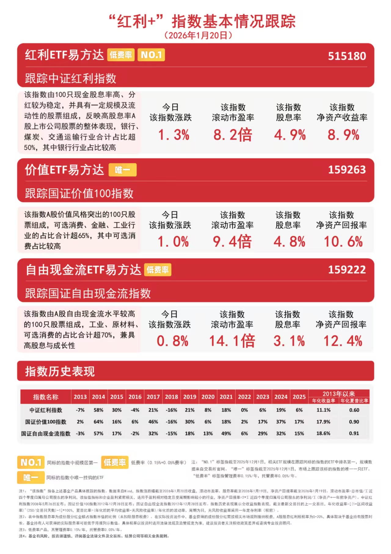 据悉,易方达基金是目前唯一一家红利类ETF全部实行低费率的基金公司,旗下红利ETF易方达(515180)、红利低波ETF易方达(563020)、恒生红利低波ETF易方达(159545)、红利价值ETF易方达(563700)等多只产品的管理费率均为0.15%/年,为投资者布局高股息资产提供了低成本、多样化的选择。