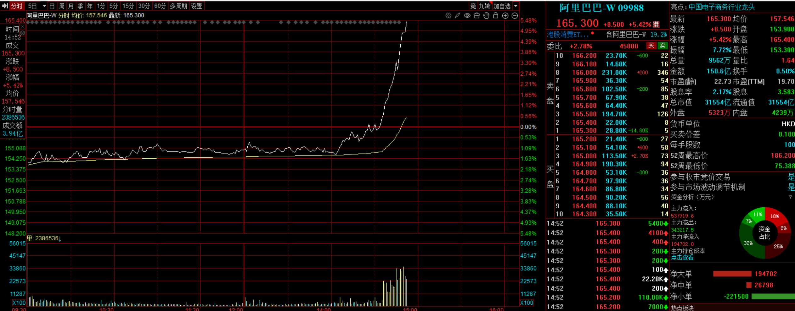 财联社11月13日电,阿里巴巴港股直线拉升,现涨超1%,早盘一度跌近2%。据《科创板日报》记者获悉,阿里巴巴已秘密启动“千问”项目,基于Qwen最强模型打造一款同名个人AI助手——千问APP,全面对标ChatGPT。