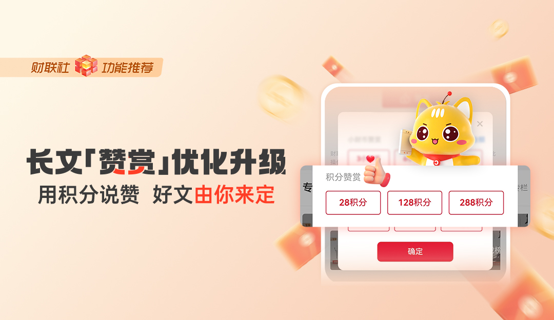 财联社「赞赏」功能升级!用积分说赞 好文由你来定