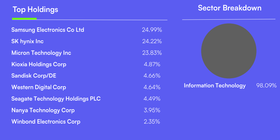 财联社4月7日电,美东时间上周四(4月2日),由Roundhil推出的内存芯片ETF——Roundhill Memory ETF(代码为“DRAM”)正式上市美股,被定位为市场上首款“纯内存ETF”。根据公告信息,DRAM ETF是一款主动管理型ETF,费率为0.65%,投资于一系列内存和存储产品制造商,目前仅持有九只股票。只有50%以上收入来自HBM、DRAM、NAND的芯片公司才能被纳入。该ETF主要重押全球三大DRAM巨头:美光科技(24.99%)、三星电子(24.22%)、SK海力士(23.83%),三者合计权重超七成。其投资组合还纳入了闪迪、日本铠侠、西部电子、希捷、以及中国台湾的南亚科和华邦电等内存大厂。