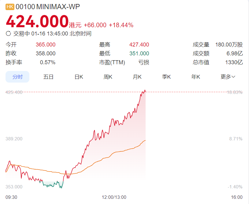 AI应用概念港股涨幅扩大 MINIMAX涨18%
