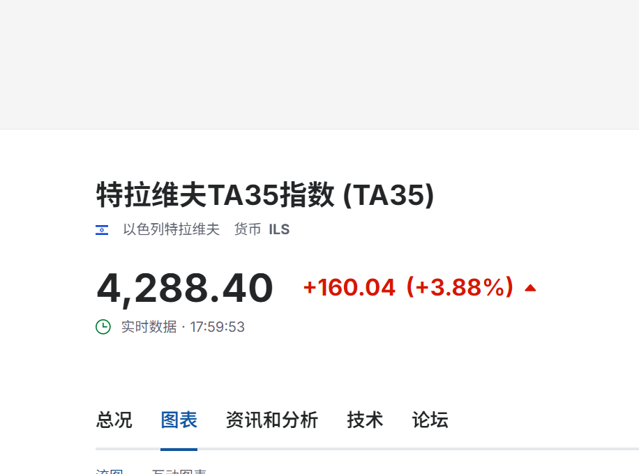 财联社3月2日电,以色列特拉维夫TA35指数一度涨超4%,升至4300点上方,涨幅现回落至3.88%。