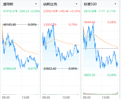财联社4月10日电,道琼斯指数向下跌破48000点,最新报47999.55点,日内下跌0.39%