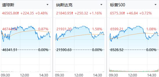 财联社4月1日电,美股三大指数涨幅继续扩大,道琼斯指数涨0.98%,报46796.47点;标普500指数涨1.18%,报6605.79点;纳斯达克综合指数涨1.72%,报21962.69点。热门科技股中,英伟达股价上涨1.56%,苹果股价上涨0.29%,谷歌-A股价上涨3.59%,微软股价上涨0.56%,亚马逊股价上涨2.17%,台积电股价上涨2.87%。博通股价上涨1.52%,特斯拉股价上涨2.8%,美光科技股价上涨11.36%,超威半导体股价上涨4.58%。