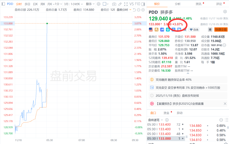 拼多多美股盘前涨逾3%