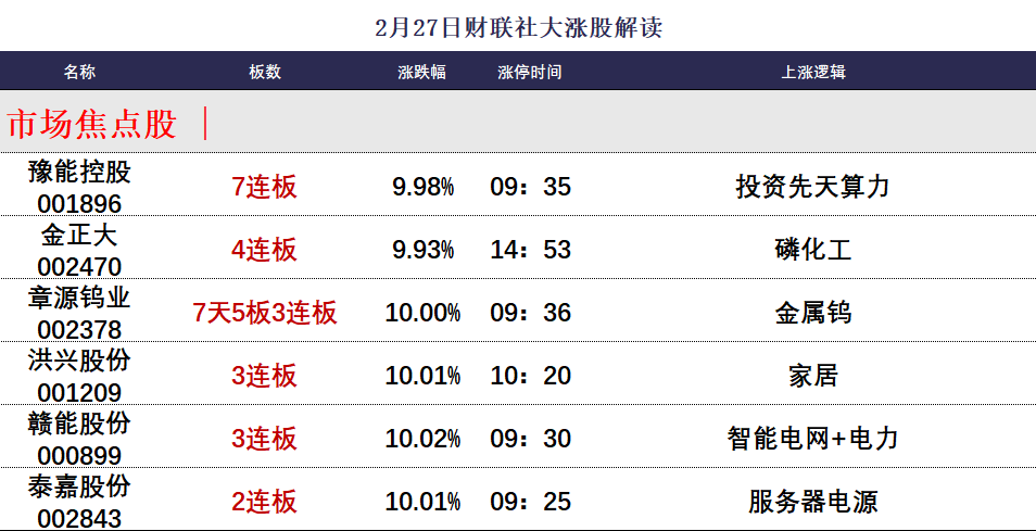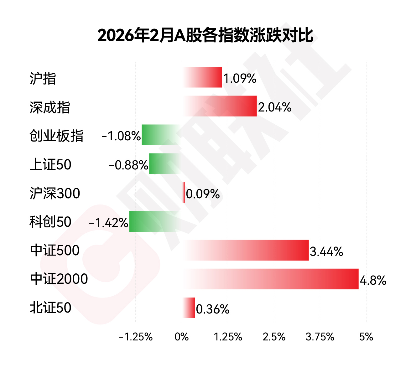 财联社2月27日电,沪指本月累计涨1.09%,呈现“冲高后窄幅震荡”的走势,月线斩获3连阳。深成指累计涨2.04%,创业板指累计跌1.08%。成交额方面,“日成交超万亿”已成常态,春节后市场交投持续活跃,沪深两市成交额连续4个交易日突破2万亿。从板块来看,热点聚焦度显著提升,受涨价催化影响,化工、有色金属等涨价题材股表现突出。化工板块内部轮动较快,分散染料概念股醋化股份涨超32%,磷化工概念股金正大涨超58%,百川股份涨近50%。玻纤概念本月反复活跃,国际复材累计涨超60%。有色·钨概念持续拉升,章源钨业本月大涨78%。稀土概念表现活跃,盛和资源续创历史新高。此外,算力和电力双概念的人气股豫能控股大涨115%位列本月涨幅第一。