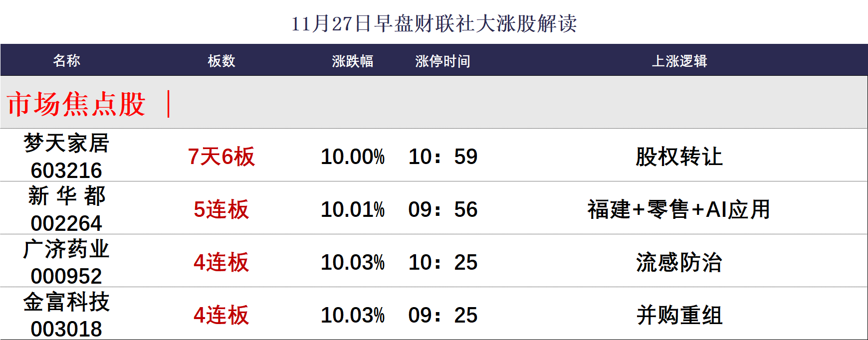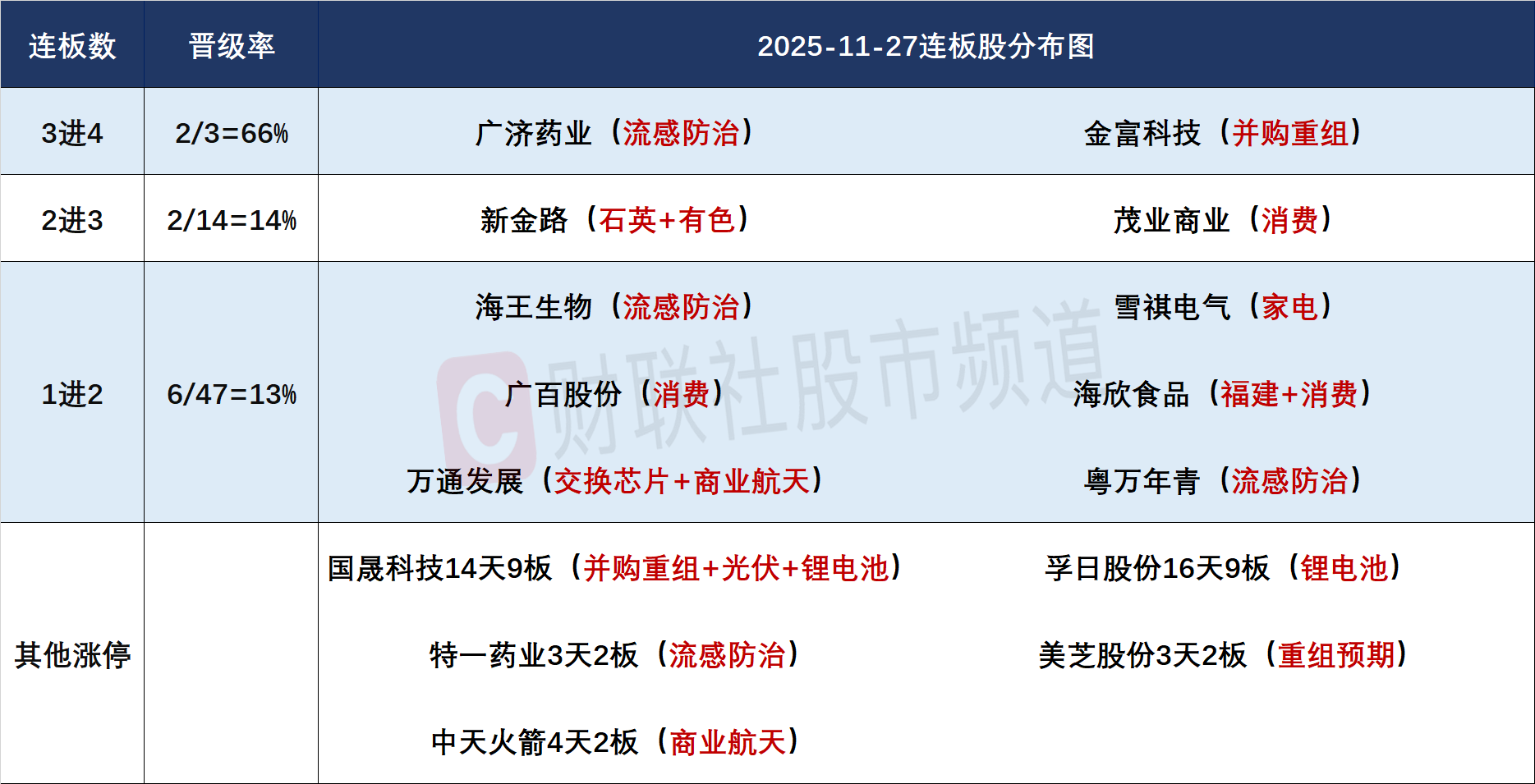 11月27日连板股分析:连板股晋级率跌破二成 连板高度降至4板