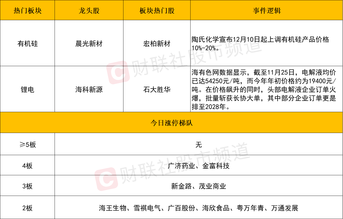 财联社11月27日电,午后锂电池电解液概念回暖,石大胜华封涨停,海科新源涨超15%,华盛锂电、奥克股份、富祥药业、孚日股份等冲高。消息面上,上海有色网数据显示,截至11月25日,电解液均价已达54250元/吨,而今年年初价格约为19400元/吨。在价格飙升的同时,头部电解液企业订单火爆,批量斩获长协大单,其中部分企业订单更是排至2028年。