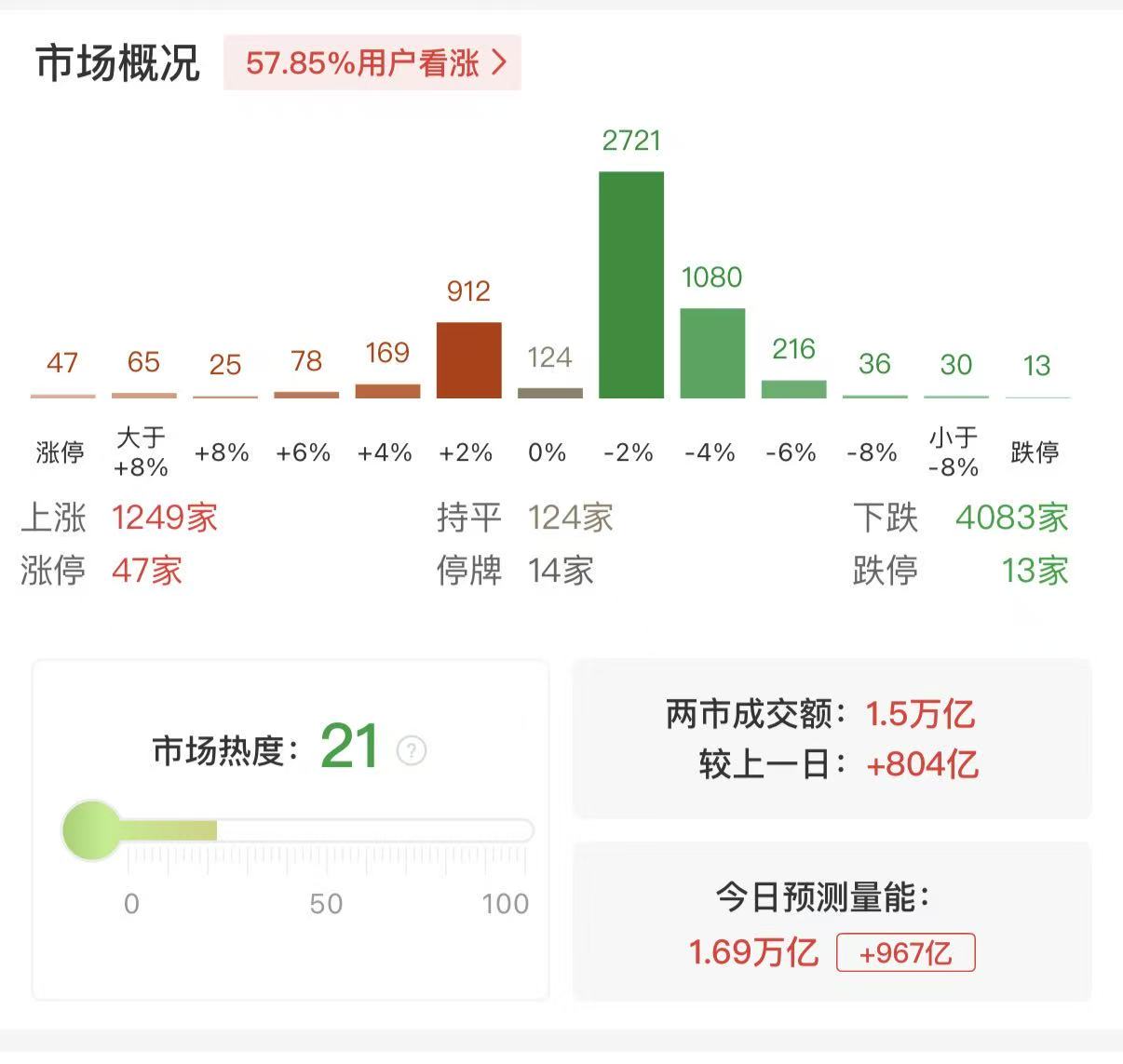 沪深两市成交额突破1.5万亿 较昨日此时放量超800亿