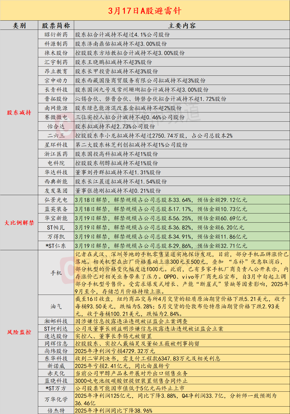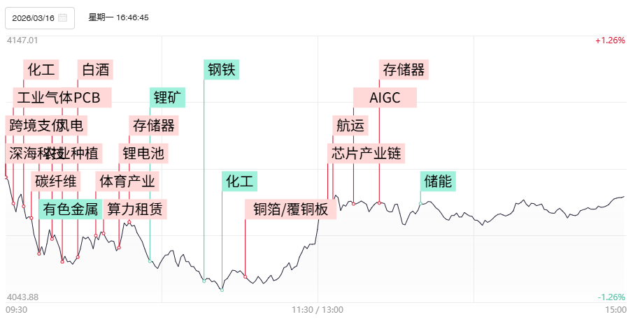 财联社3月17日电,上个交易日市场探底回升,深成指收红,创业板指涨超1%。全市场超2800只个股上涨。沪深两市成交额2.33万亿,较上周五缩量750亿。1)据CFM闪存市场预计,2026年存储价格整体仍将延续上涨,此前三星和SK海力士计划继续大幅调高第二季度存储产品价格。存储芯片概念全天强势,朗科科技、金太阳、兆易创新等多股涨停,佰维存储、德明利等多股续创历史新高。2)随着英伟达已与PCB厂商就下一代覆铜板(CCL)材料M10启动测试,PCB产业链延续上周五强势,其中铜箔概念股大放异彩,金安国纪、超颖电子封涨停,瑞丰高材、东威科技、逸豪新材等多股涨超10%。3)据CCTV国际时讯,美以袭击伊朗后,国际化肥供应链也受到明显冲击。种业板块为首的农业股逆势大涨,农发种业、西王食品涨停,康农种业、秋乐种业、敦煌种业、神农种业等均涨超5%。4)国家电网3月14日发布消息,统计数据显示,1—2月,固定资产投资累计完成757亿元,同比增长80.6%。电网设备板块盘中一度展开回流,上周五跌停的高位人气股顺钠股份实现反包涨停,科林电气、泽宇智能、四方股份等纷纷出现企稳反弹动作。不过受制于绿电、储能产业链今日遭遇深幅回调,南网科技、正泰电器等纷纷位居跌幅前列。