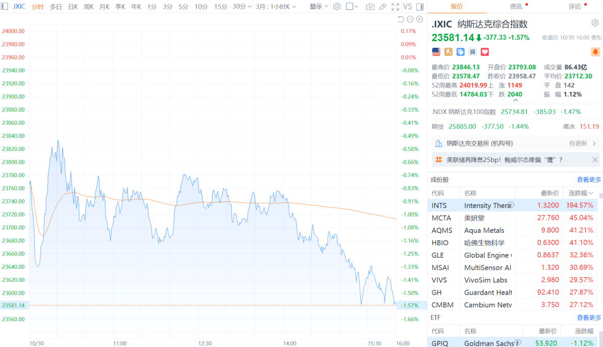 13、美股三大指数集体收跌,纳指跌1.57%,标普500指数跌0.99%,道指跌0.23%。Meta跌超11%,为三年以来最大单日跌幅。纳斯达克中国金龙指数收跌1.88%。