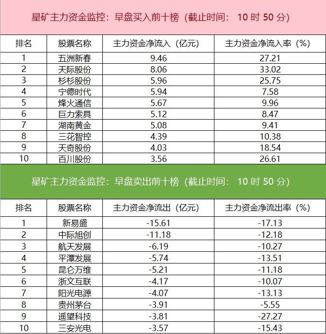 主力资金监控:五洲新春净买入超9亿