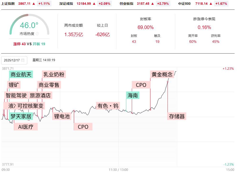 12月17日连板股分析:高位股大面积退潮 算力硬件股全线反弹