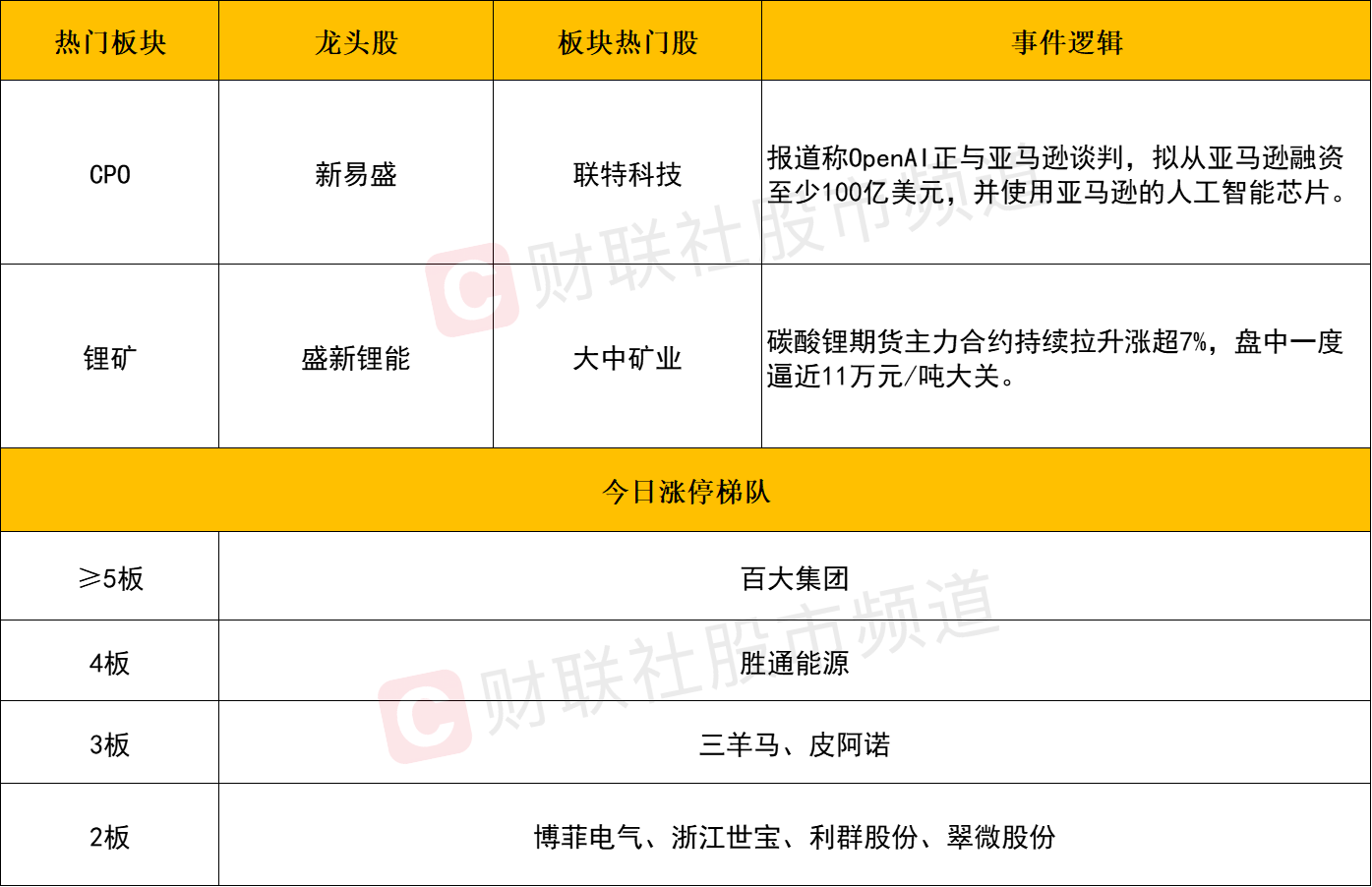 今日共49股涨停,连板股总数8只,其中三连板及以上个股4只,上一交易日共13只连板股,连板股晋级率30.76%(不含ST股、退市股)。个股方面,全市场超3600只个股上涨,但高位股大面积退潮,龙洲股份连续第二个一字跌停拖累短线情绪,平潭发展、安记食品、太阳电缆、顺灏股份等人气热股跌停。百大集团虽然晋级5连板,但盘中也多次炸板,放量分歧。板块方面,算力硬件股全线反弹,核心中军天孚通信、新易盛涨超9%,中际旭创涨近7%,液冷服务器分支表现活跃,奕东电子20CM涨停,飞龙股份缩量加速,英维克涨停创历史新高;锂电板块同样迎来反弹,锂矿股领涨,金圆股份4天2板,大中矿业、盛新锂能涨停,消息面上,广期所碳酸锂主力合约盘中一度涨近9%,逼近11万元/吨关口。