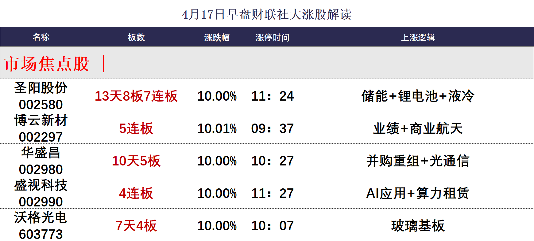 4月17日午间涨停分析