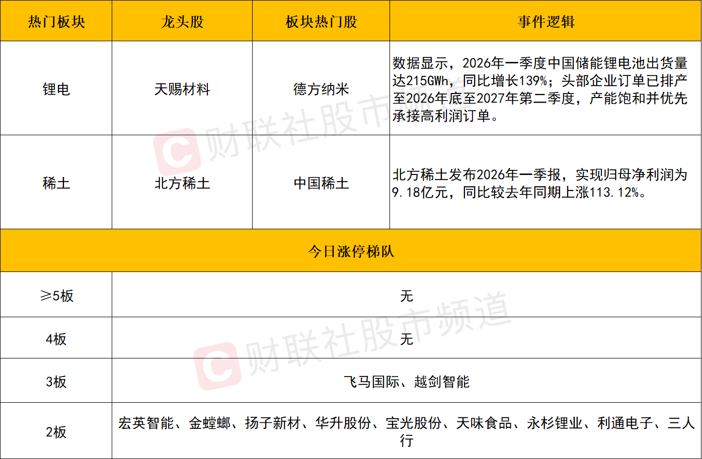 此外,业绩预期线亦是当前资金重点布局方向,飞马国际走出3连板,宏英智能、天味食品、利通电子纷纷拿下2连板,背后核心逻辑均受益于其一季报业绩超预期利好催化,因此在后续标的选择上,业绩遇喜的个股仍是重要的加分项。