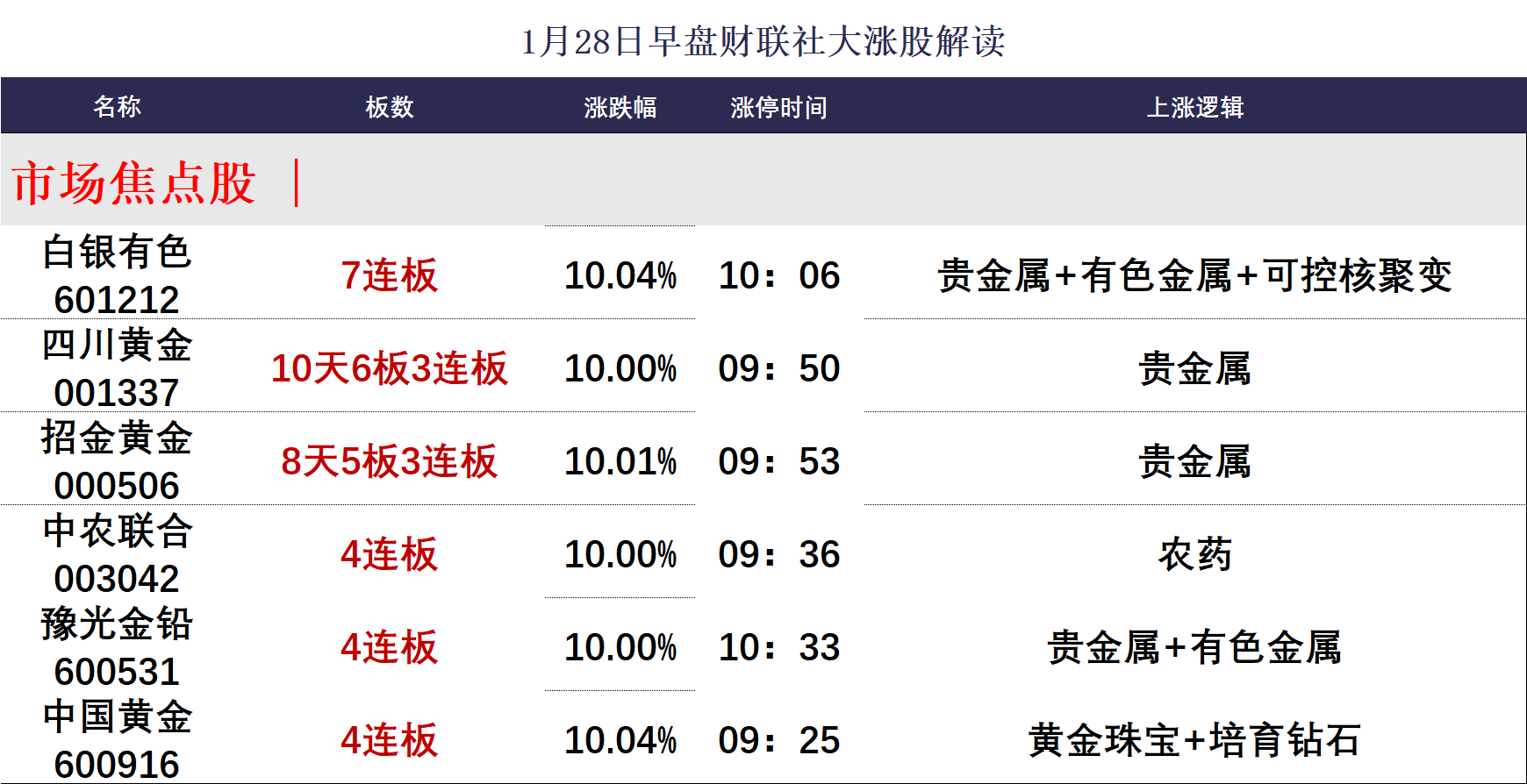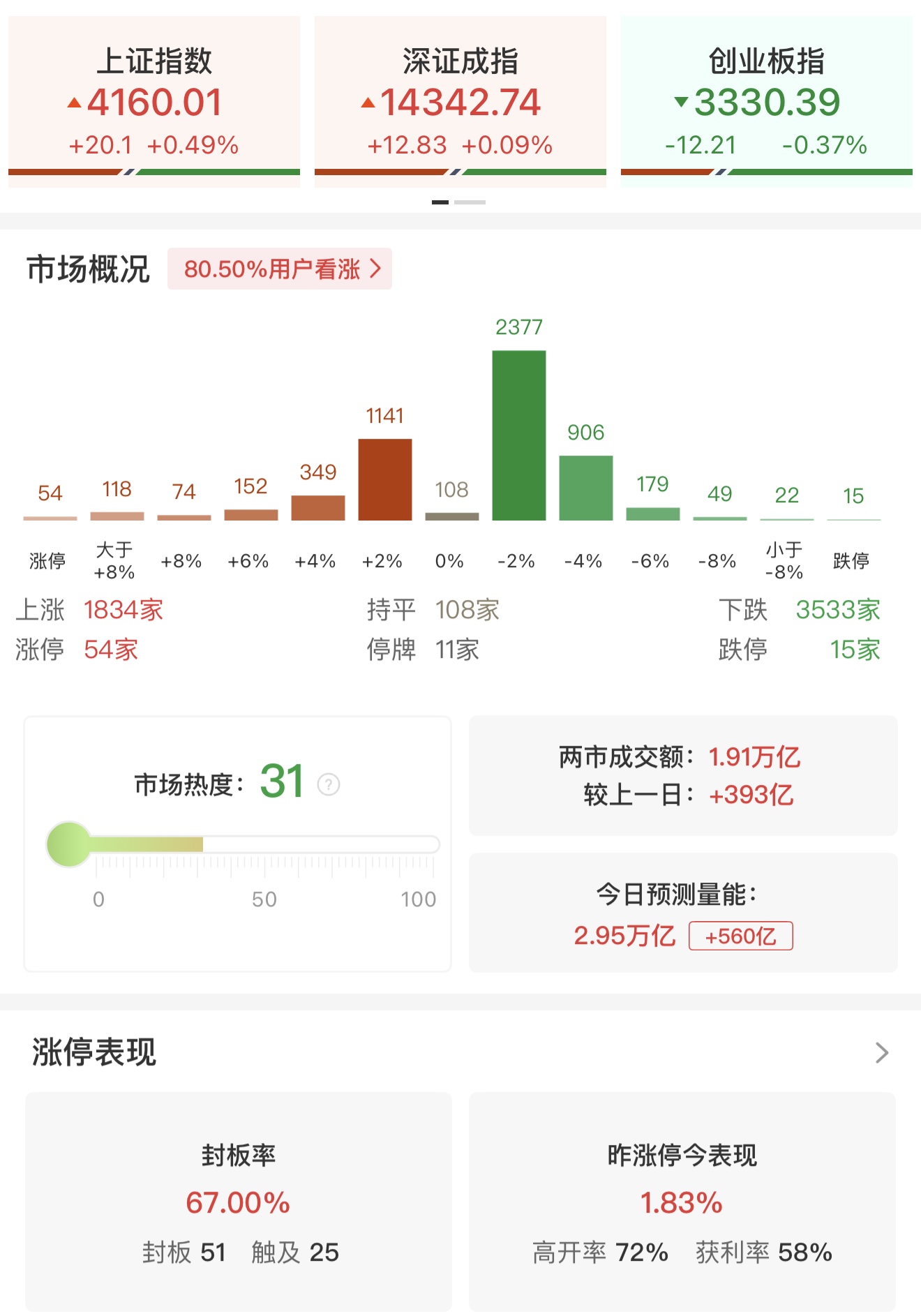 财联社1月28日电,三大指数涨跌不一,沪指震荡拉升,创业板指高开低走,一度跌超1%。沪深两市半日成交额1.91万亿,较上个交易日放量393亿。市场跌多涨少,全市场超3500只个股下跌。从板块来看,资源股集体爆发,贵金属、油气方向领涨,中国黄金4连板,湖南黄金3连板,四川黄金10天6板,招金黄金8天5板,中国海油涨超7%续创历史新高,石化油服、准油股份涨停。分散染料概念集体走高,浙江龙盛、闰土股份、亚邦股份涨停。存储芯片概念表现活跃,普冉股份涨超15%续创历史新高,气派科技20CM涨停。下跌方面,病毒防治概念集体下挫,之江生物跌超9%。截至收盘,沪指涨0.49%,深成指涨0.09%,创业板指跌0.37%。