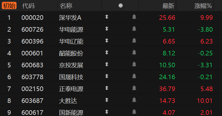 财联社3月23日电,市场焦点股深华发A(5板)竞价涨停,电力板块华电能源(9天6板)低开3.80%、华电辽能(5板)高开6.23%、韶能股份(3板)低开0.25%,剥离地产业务的京投发展(6天4板)低开3.31%,光伏板块国晟科技(8天4板)低开0.21%、正泰电源(8天4板)高开5.48%,并购重组的大胜达(3板)竞价涨停,天然气概念股国新能源(2板)高开2.01%。