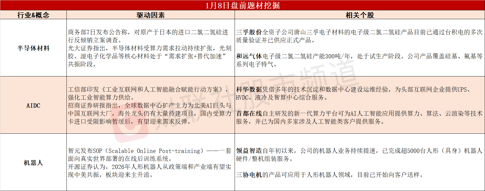 今日共94股涨停,连板股总数19只,其中三连板及以上个股10只,上一交易日共26只连板股,连板股晋级率38.46%(不含ST股、退市股)。个股方面,全市场超3900只个股上涨,近百股涨停,短线情绪火热,志特新材20CM5连板引爆赚钱效应,2026年首周已经有13只个股累计涨幅超50%。题材炒作火热,大小盘股表现分化,以中际旭创、新易盛为代表的算力硬件权重,以及中国平安为代表的金融权重弱势下跌。板块方面,商业航天概念早盘一度跳水,但午后又获得资金踊跃承接,逾40股涨停或涨超10%,其中鲁信创投11天9板,金风科技10天6板,中国卫通9天5板;AI应用端在志特新材20CM5连板的带动下爆发,同样有近40股涨停或涨超10%,其中快意电梯5连板,引力传媒5天4板,易点天下、迪安诊断、会畅科技、天龙集团、昆仑万维等20CM涨停,消息面上,1月8日,OpenAI宣布推出ChatGPT Health,该模式集成于ChatGPT中。