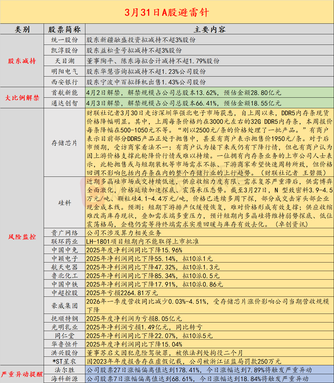 11、豪威集团公告,2026年一季度营收同比减少0.03%-4.51%,受存储芯片涨价影响公司当期营收规模下降。