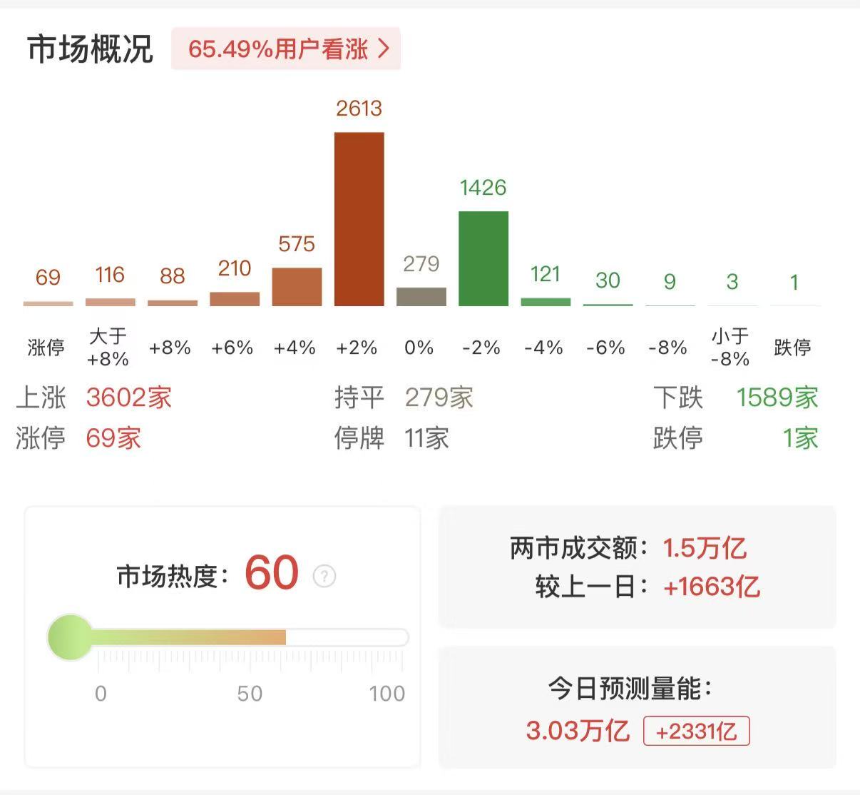 沪深两市成交额突破1.5万亿 较上一日此时放量超1600亿