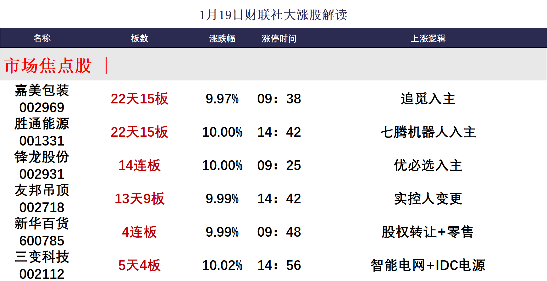1月19日涨停分析