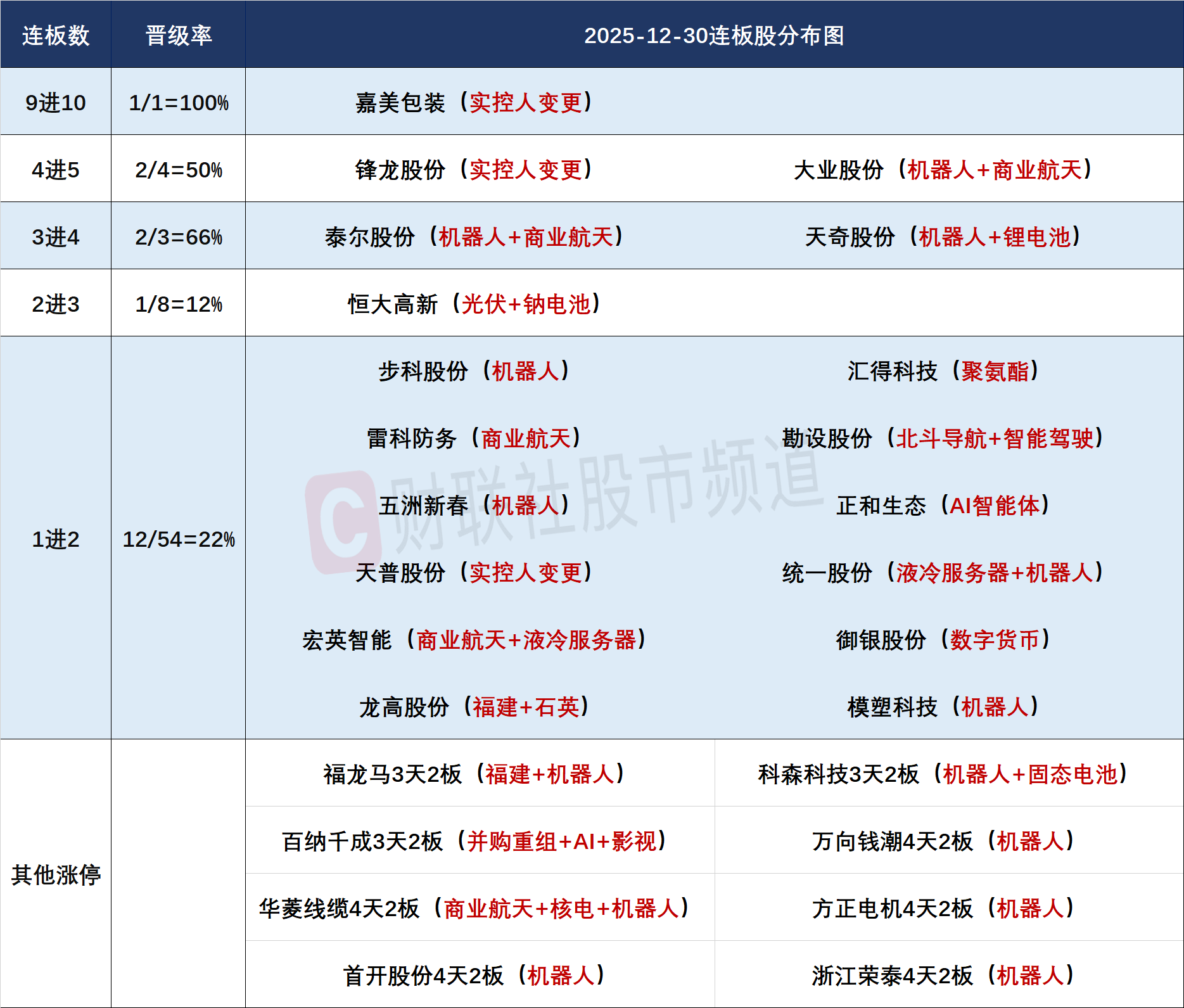 12月30日连板股分析:连板股晋级率降至三成 商业航天概念迎分歧
