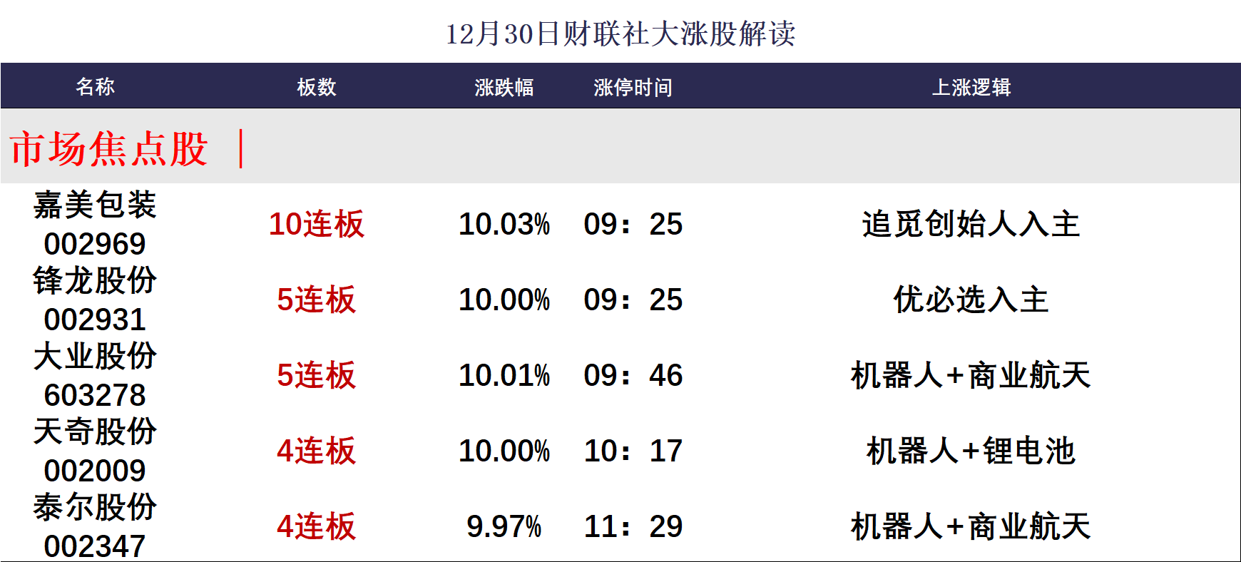 12月30日午间涨停分析