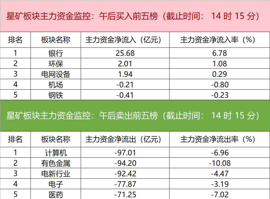 财联社11月4日电,财联社星矿数据显示,今日主力资金净流入银行、环保、电网设备等板块,净流出计算机、有色金属、电新行业等板块,其中计算机板块净流出超97亿元。个股方面,包钢股份主力资金净买入4.91亿元位居首位,福龙马、中微公司、工商银行主力资金净流入居前;阳光电源遭净卖出近12亿元位居首位,常山药业、三花智控、亿纬锂能主力资金净流出额居前。