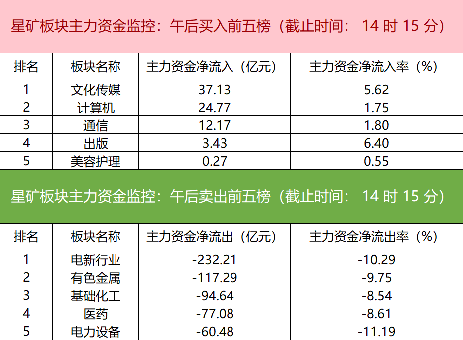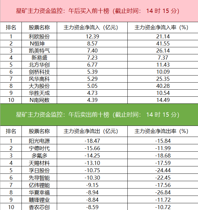 财联社11月18日电,财联社星矿数据显示,今日主力资金净流入文化传媒、计算机、通信等板块,净流出电新行业、有色金属、基础化工等板块,其中电新行业净流出超232亿元。个股方面,利欧股份主力资金净买入12.39亿元位居首位,N恒坤、凯美特气、新易盛主力资金净流入居前;阳光电源遭净卖出近18亿元位居首位,宁德时代、多氟多、天赐材料主力资金净流出额居前。