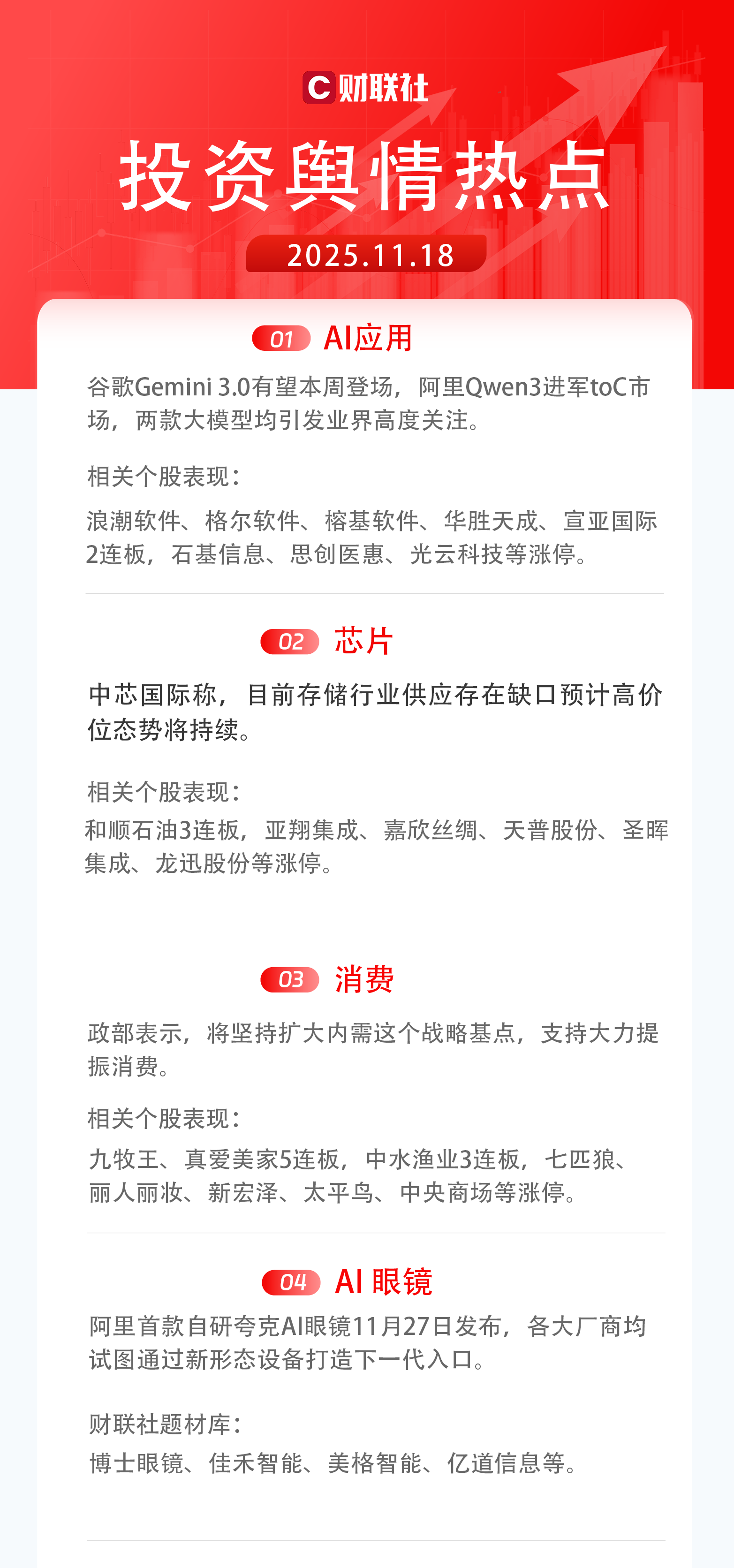 1)AI应用:谷歌Gemini 3.0有望本周登场,阿里Qwen3进军toC市场,两款大模型均引发业界高度关注。