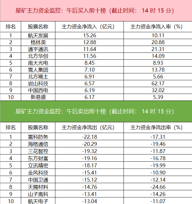 主力资金监控:国防军工板块净流出超117亿