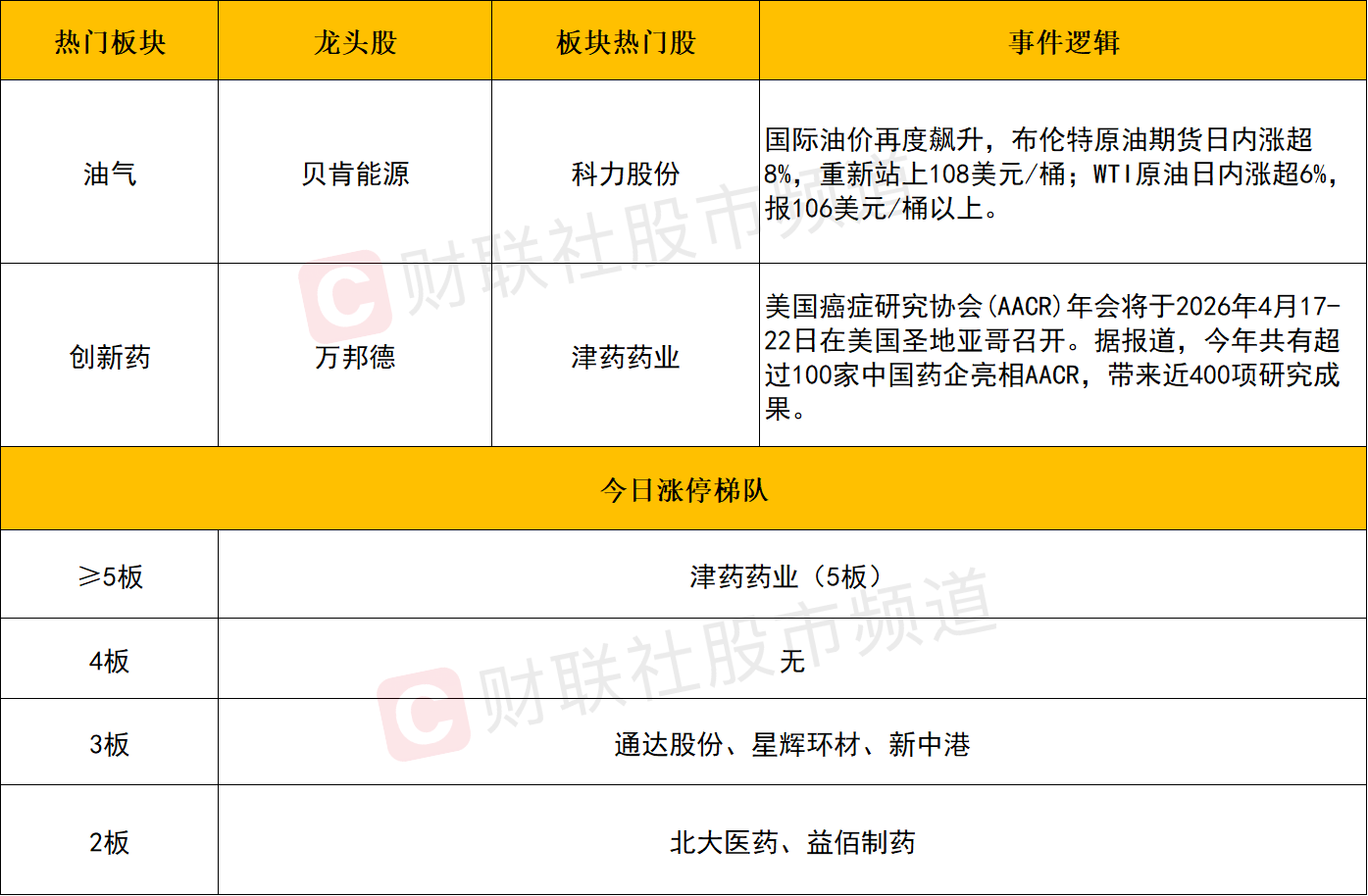 今日市场缩量普跌,最终超4300只个股收绿。其中医药板块仍是目前延续性最好题材。津药药业一字晋级5连板,双鹭药业尾盘涨停录得7天4板,此外北大医药、益佰制药同样晋级成功,万邦德、美诺华等也延续涨势。此外,光纤也成为持续逆势细分方向,新能泰山8天6板,中利集团10天6板,长飞光纤、特发信息、亨通光电均续创历史新高。但需注意的是,资金抱团医药、光纤等少数热点板块,本质上是存量资金博弈下的避险与聚焦行为。一旦后续市场情绪出现转向、抱团资金出现松动分歧,或者高位龙头股断板走弱,这些短期涨幅较大的板块及个股,大概率会面临获利盘集中兑现的压力,届时需警惕相关标的跟随出现补跌风险。