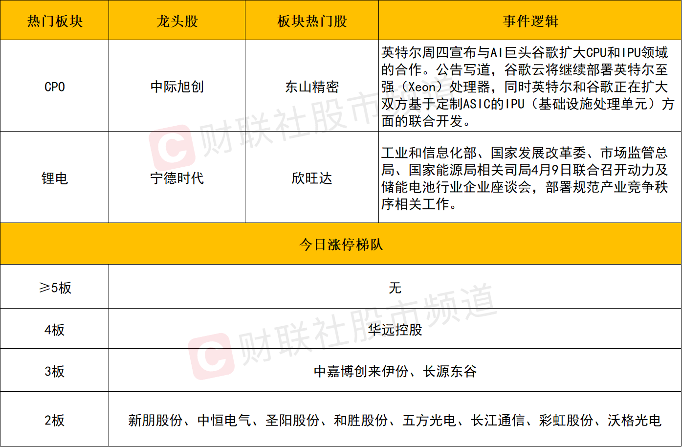 财联社4月10日电,算力硬件股反复活跃,源杰科技午后直线拉升涨超10%,东山精密、新易盛、中际旭创涨超5%,均创历史新高,天孚通信、华懋科技、可川科技、长光华芯涨幅靠前。消息面上,英特尔周四宣布与AI巨头谷歌扩大CPU和IPU领域的合作。公告写道,谷歌云将继续部署英特尔至强(Xeon)处理器,同时英特尔和谷歌正在扩大双方基于定制ASIC的IPU(基础设施处理单元)方面的联合开发。