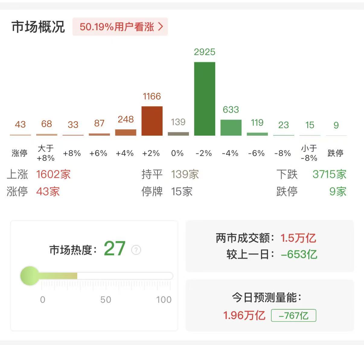沪深两市成交额突破1.5万亿 较昨日此时缩量超1200亿