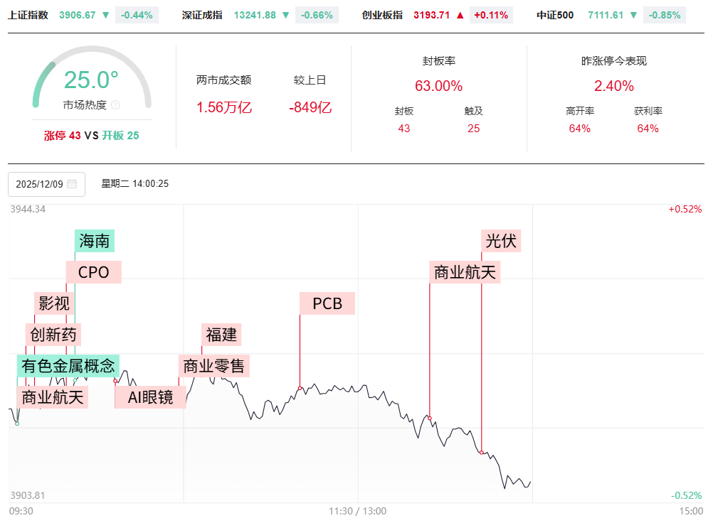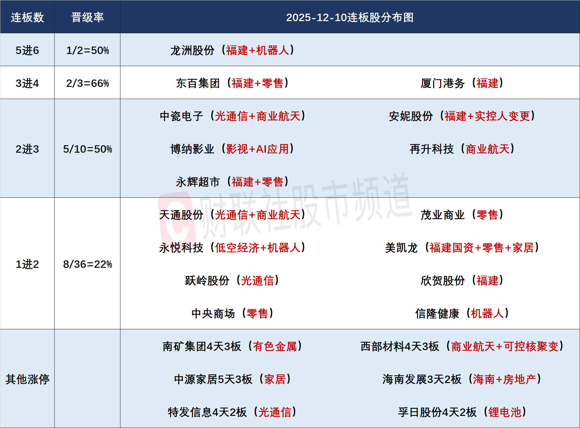 12月10日连板股分析:连板股晋级率近五成 算力硬件股探底回升