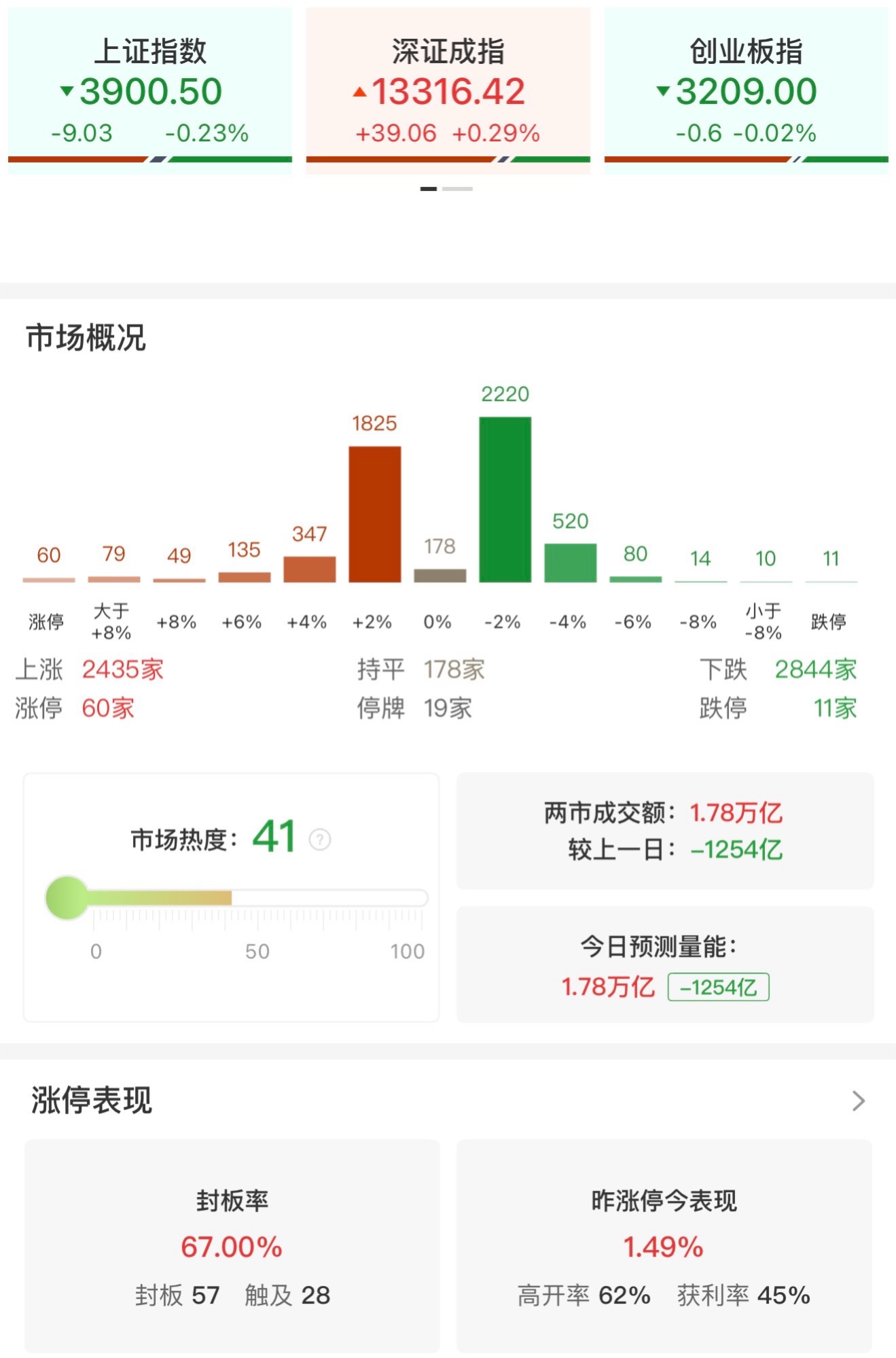 今日共56股涨停,连板股总数16只,其中三连板及以上个股8只,上一交易日共17只连板股,连板股晋级率47.05%(不含ST股、退市股)。个股方面,高位股负反馈开始显现,海欣食品、骏亚科技跌停,航天发展跌超6%。此外,安记食品、舒华体育、昇兴股份、南京商旅均炸板翻绿,亏钱效应同样显著。龙洲股份虽然将市场连板高度维持在6板,但是盘中多次炸板,放量分歧。板块方面,算力硬件股探底回升,中瓷电子3连板,跃岭股份2连板,特发信息4天2板,权重新易盛午后一度涨近5%再创历史新高;房地产板块午后异动拉升,万科A涨停,港股万科企业盘中一度暴涨超18%,世联行、财信发展、南都物业、华夏幸福等个股涨停。